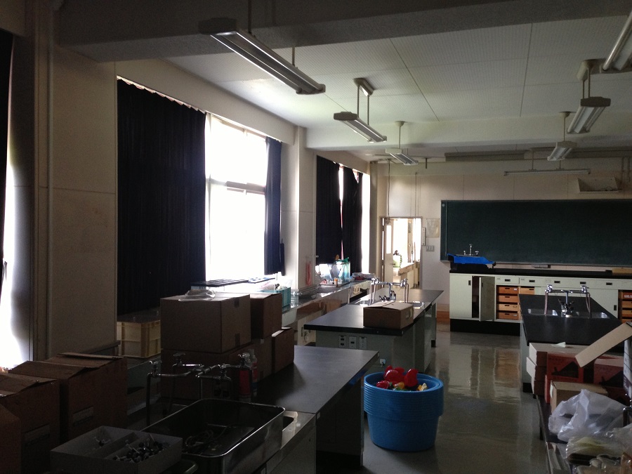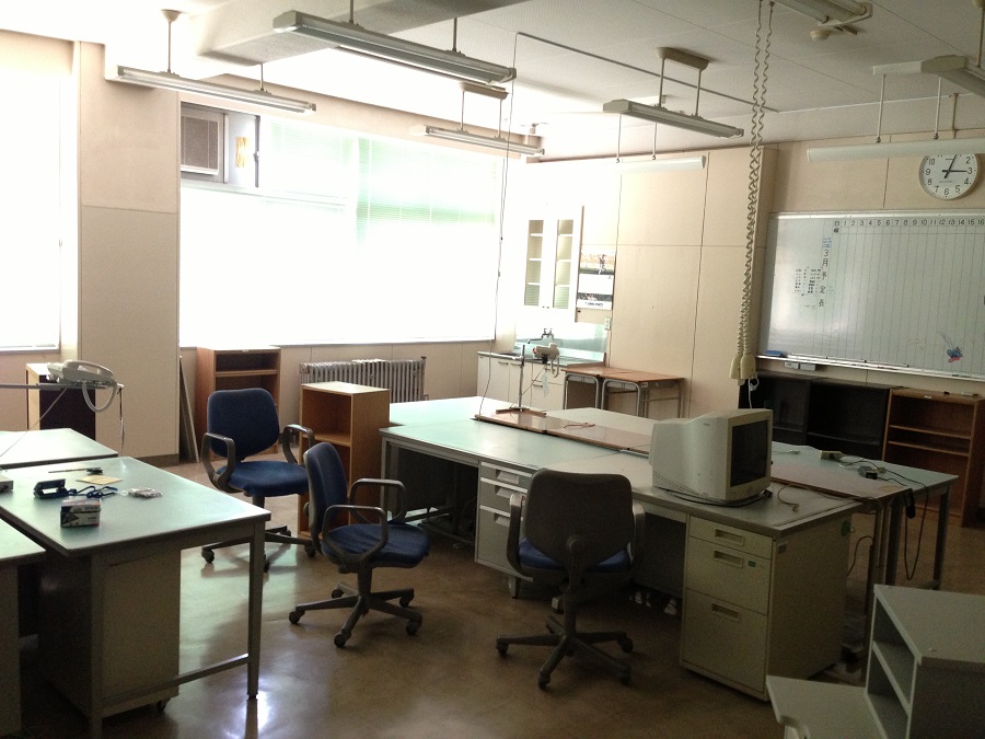 生物教室には、「東へ」と書かれた付箋が貼られた備品が置いてありました。