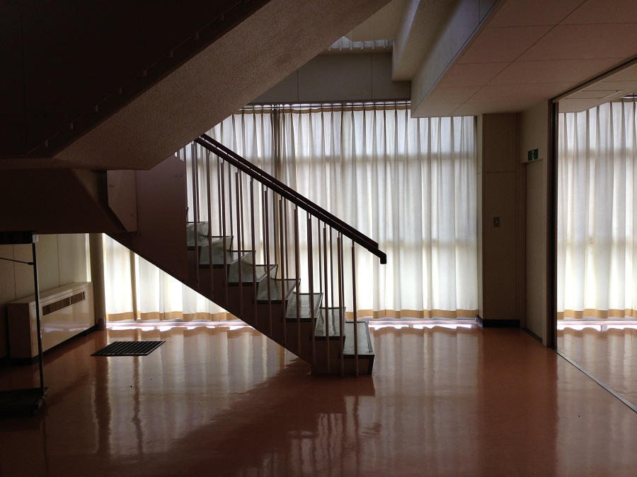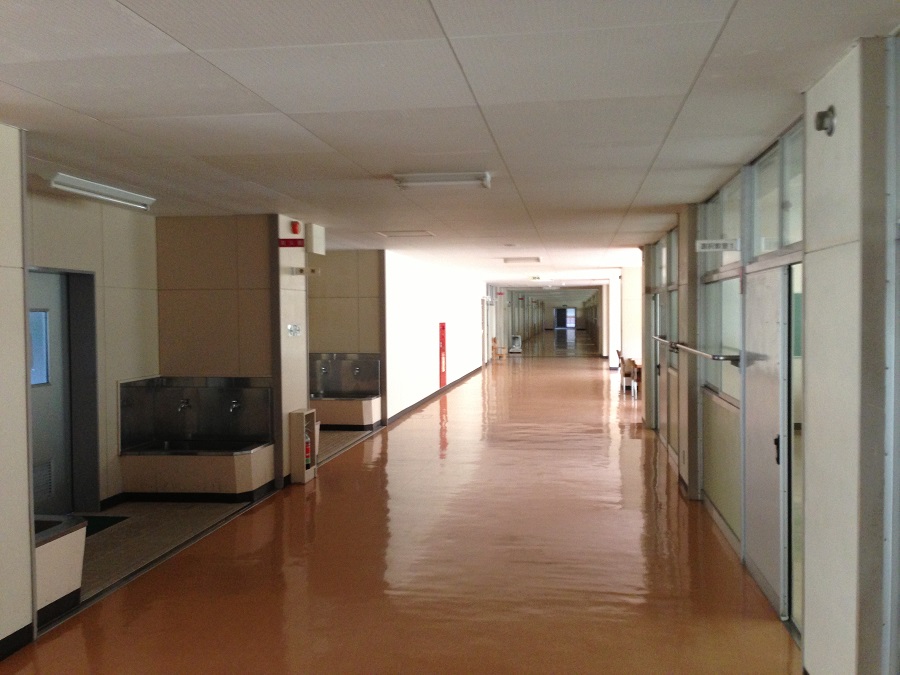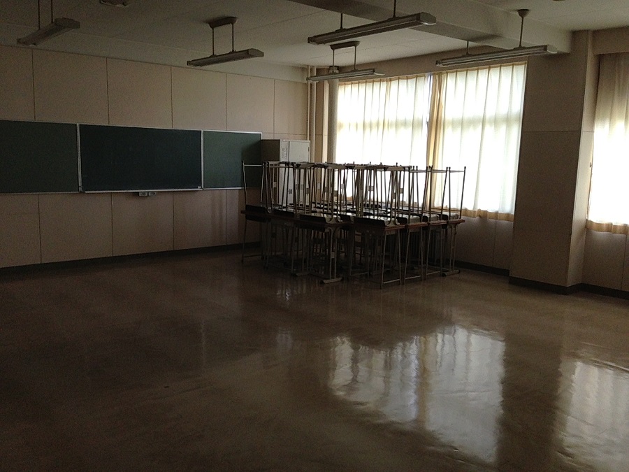 奥が体育館です。飾ってあった絵も取り外され、なんかさっぱりしています。