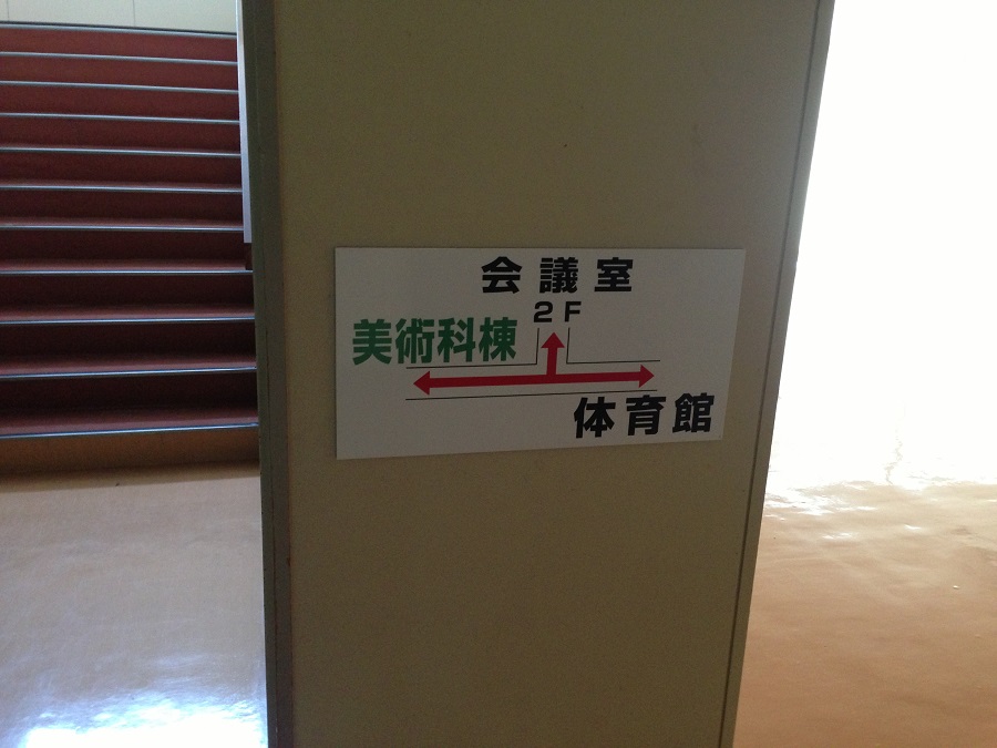 生徒指導室近くの階段にある案内図です。美術科棟が出来てから設置したんだろうなあ..