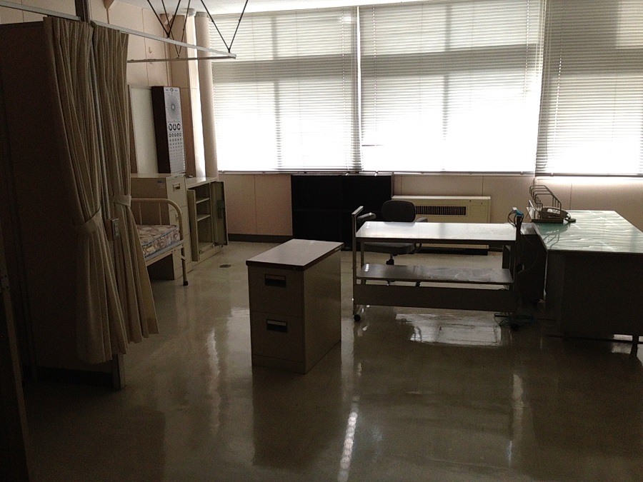保健室。ベッドや視力検査に使うやつが置いてありました。