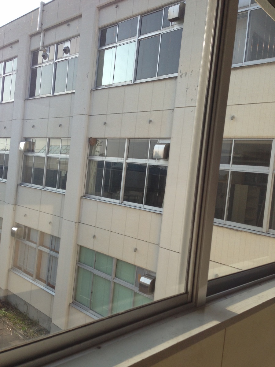 2階の窓から見た教室です。