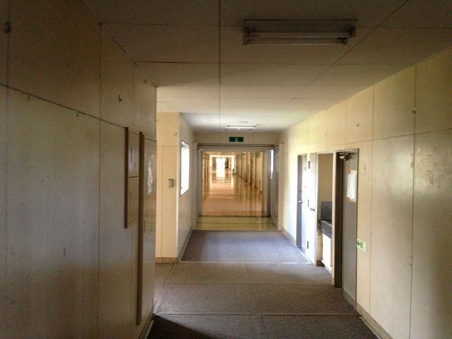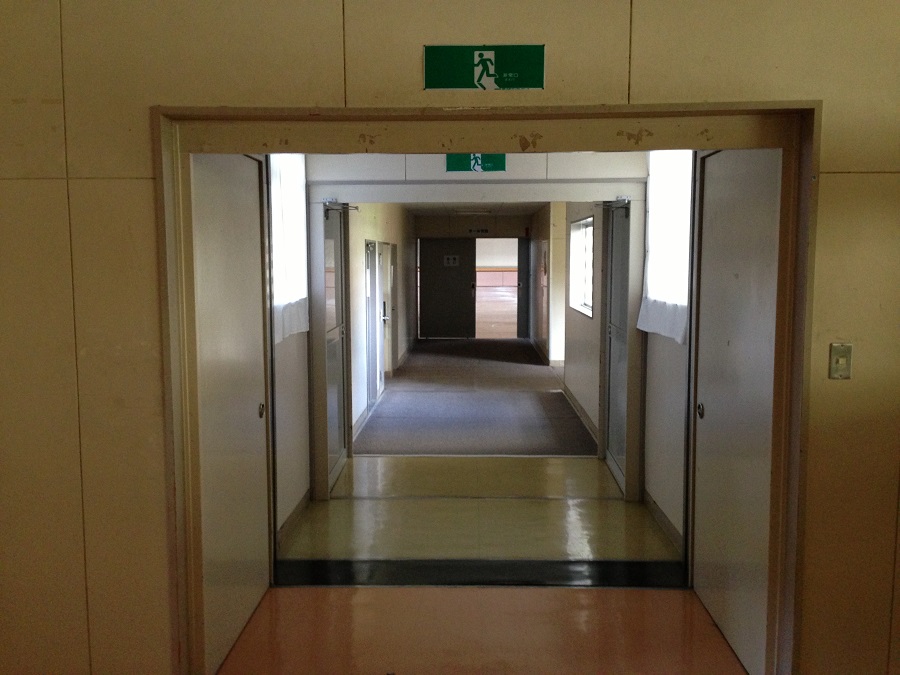 体育館から廊下を見た景色。