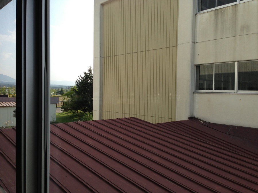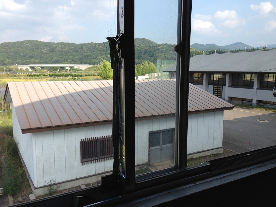 上の窓から見た校舎。